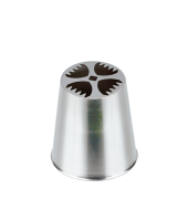 насадка имеет форму шестиконечной звезды с закрытым центром и скошенными лучами. Насадка позволяет сформировать цветок из крема одним движением. Цветок получится как настоящий, со множеством деталей.